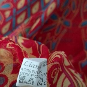 Liang Dian Vintage Silk Blend Peacock Paisley Floral Multicolor Red Yellow Blue Orange Shawl Wrap Stole Cover Up Scarf Bohemian Lagenlook Artisy Business Casual Vacation Travel Shabby Chic Whimsical Farmhouse Retro Hipster Preppy Coastal Art To Wear Farmhouse Castlecore Beach Pool Holiday Christmas Festival Winter Fall