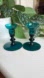 Vintage Peacock Blue Glass Candle Holders Pair Set of 2