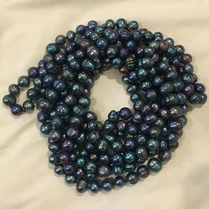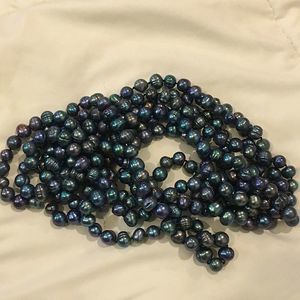 Vintage Peacock Pearls Necklace Endless Strand 99 inches Long