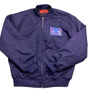 Vintage Peak Alaska Oil 80s/90s zip up jacket. Quilted lining. Steel zip enclosure. Deep navy. Two front slide pockets. Tagged as an XL. 24 inches pit to pit, 27 inches long. Overall excellent vintage condition, does have a tiny snag on the right chest shown in last photo. Smoke and pet free home. Kuparuk. Alaska. Peak oil.