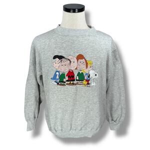 Vintage Peanuts Charlie Brown Cartoon Sweatshirt Women’s Large Gray Embroidered
