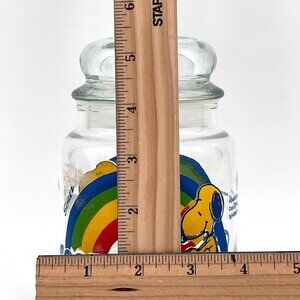 Vintage Peanuts Snoopy & Woodstock Glass Goodies Cookie Candy Jar & Rainbow 5"