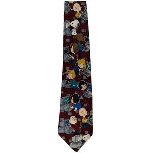 Vintage Peanuts “Surfing the Net” Tie 100% Silk Snoopy & Gang on Computers 55.5"