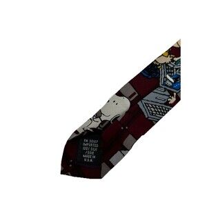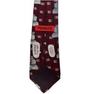 Add nostalgic charm to your wardrobe with this vintage Peanuts silk necktie featuring Charlie Brown, Snoopy, Linus, and the gang "surfing the net" on retro computers. With a floppy disk background and whimsical text like "It was a dark and stormy night!", this tie is perfect for collectors or fans of classic Peanuts comics. Made of 100% silk and crafted in the USA.