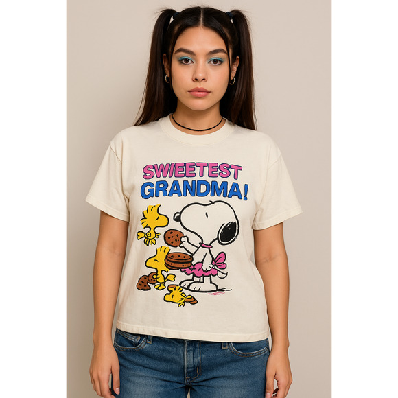Vintage Peanuts White Sweetest Grandma Graphic Short Sleeve Top Womans Size 2XL