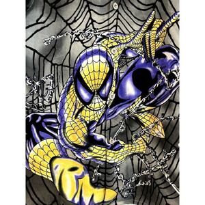 Vintage Pear Bay Shirt Boys 18 Gray Black SpiderMan Camp Collar Button Up Retro VTG