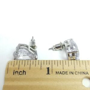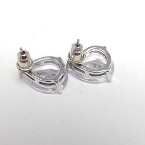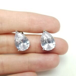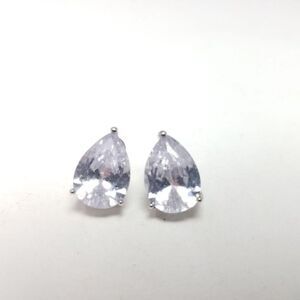 Vintage Pear Drop Shape Stud Earrings, Clear Rhinestone and Silver Tone Setting