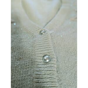 Timeless elegance with this vintage Worthington cardigan — a soft silk-angora blend adorned with lustrous pearls and delicate beadwork that shimmer with every movement.