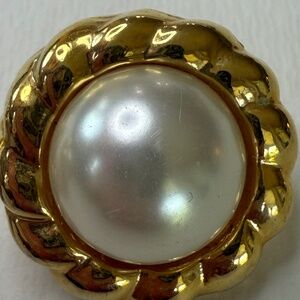 Vintage gold-tone faux pearl and rope twist stud women's earrings in good condition. Add a touch of timeless elegance to your look with these stunning round earrings featuring a faux pearl center, framed by a gold-toned twisted rope design. Perfect for vintage lovers or anyone seeking a classic accessory with a refined finish. Pair them with a silk blouse, a structured blazer, or a romantic dress for a chic, retro-inspired vibe.