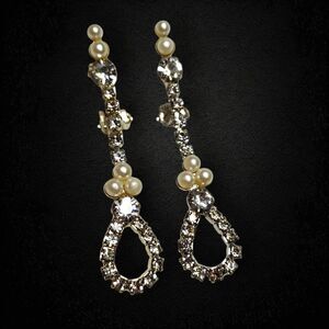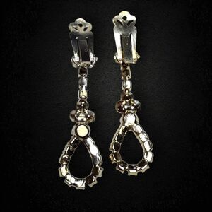 Step into vintage glamour with these dazzling clip-on dangle earrings. Designed with sparkling rhinestones and faux pearls, they feature a long drop with a looped teardrop shape that catches the light beautifully. Perfect for adding a touch of old-Hollywood elegance to any outfit, no pierced ears required!