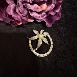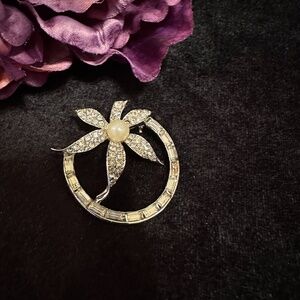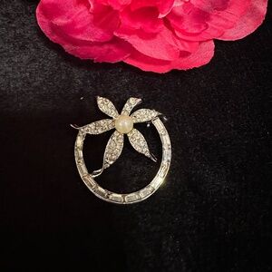 Vintage Pearl and Rhinestone Flower Wreath Brooch