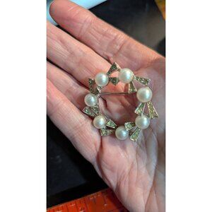 Vintage Pearl look & Rhinestone Circle Brooch Pin