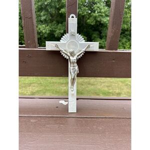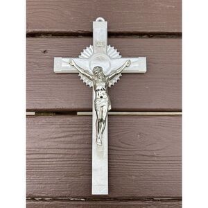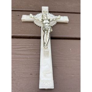 Vintage Pearl White Crucifix Lucite Cross White Jesus RELIGIOUS, FAITH. Lucite vintage Cross, white Crucifix, Religious Faith, Ornate Cross,vintage ornate crucifix. In excellent preowned condition. Its approximately 12” Tall and 6” inches wide.