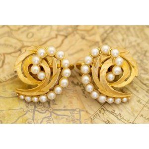 Vintage Pearled Spiral Clip On Earrings by Crown Trifari i29