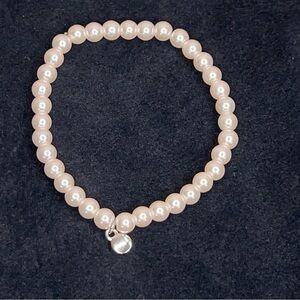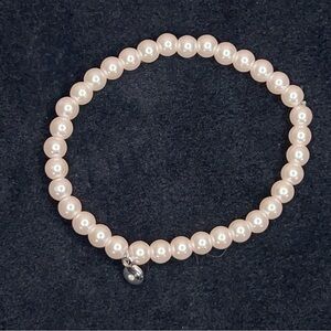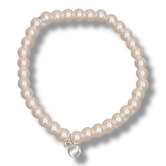 Vintage Pearly Style Bracelet Classic Retro Stretch Ivory White Silver Charm