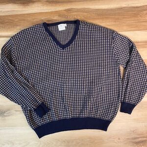 Vintage Pebble Beach Sweater Mens XL USA Grandpacore V Neck Navy Beige