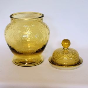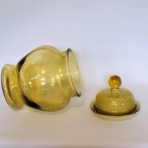 Vintage Pebble Glass Apothecary Glass Jar Container 9" Yellow Amber.