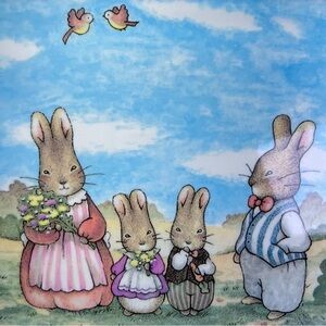 featuring the "Sweet Family Rabbits" design, likely inspired by Beatrix Potter's Peter Rabbit characters.