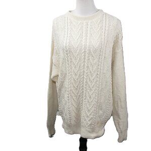 Vintage Peconic Bay Traders Cream 100% Cotton Crew Neck Sweater Size Medium