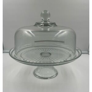 Vintage Pedestal Glass Cake Stand with Glass Dome