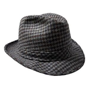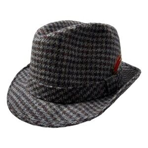 Vintage Pedigree Fifth Avenue New York Fedora Wool Hat L Large Gray Houndstooth