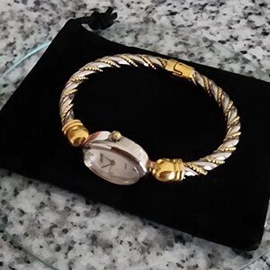 Vintage Pedre Ladies Quartz Watch-White/Yellow Gold-Plated-Twisted Style Bracelet or cuff band