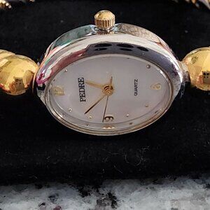 Vintage Pedre Ladies Watch-White/Yellow Gold-Plated-Twisted Style Bracelet Band