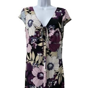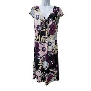 Vintage Peep Studio Floral Y2K Babydoll Knee Length Dress Size L Purple Fairy