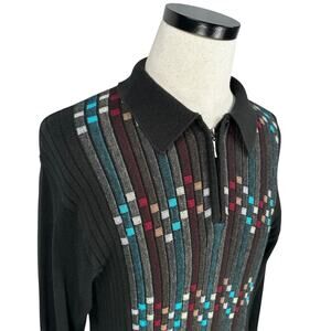 Vintage Peletti Polo Sweater Men XL Multi Striped Geometric Cosby Cotton 1/4 Zip