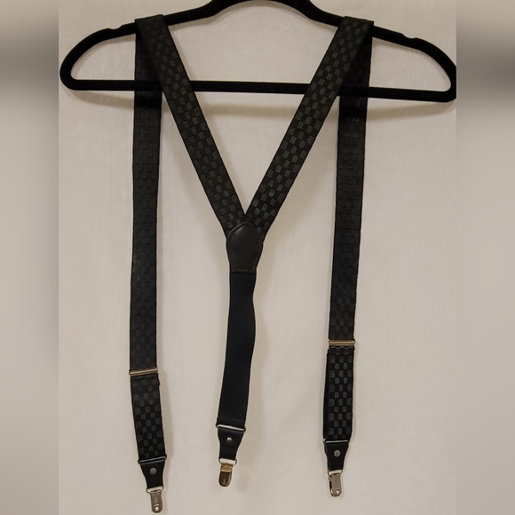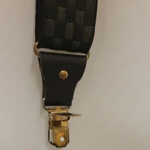 Vintage Pelican USA Black Adjustable Elastic Gold Clip on Checkered Suspenders