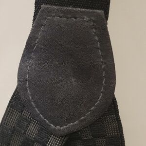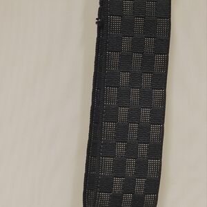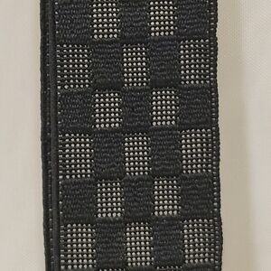 Vintage Pelican USA Black Gray Adjustable Elastic Gold Tone Clip on Checkered Suspenders, 1.25" wide, Very Good condition.