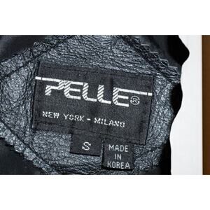 Vintage Pelle Black Leather Patchwork Nylon Panel Bomber Jacket Medium 90s