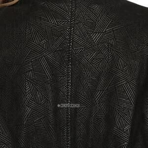 Features: Embossed leather, removable insulated lining, shoulder pads, back slit
