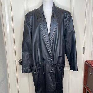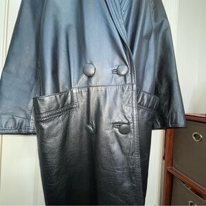 Vintage Pelle Leather Long Trench Coat Black Double Breasted