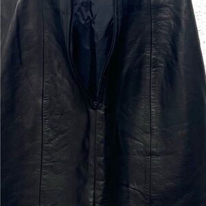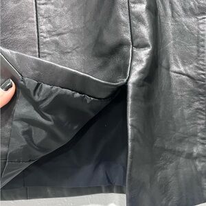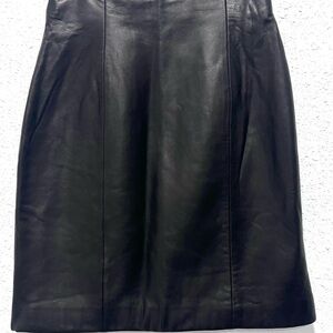 PREOWNED VINTAGE sophisticated black pencil skirt from Pelle Studio is designed for a night out or cocktail event. Crafted with a knee-length cut, it features a sleek and structured silhouette that flatters the figure. The smooth leather finish adds a touch of elegance, making it a versatile addition to your wardrobe.