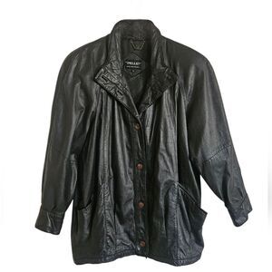 Vintage Pelle Women's Black Leather Button-down Jacket Size M