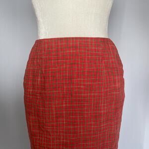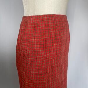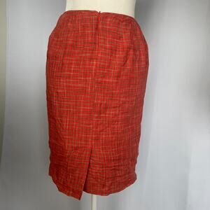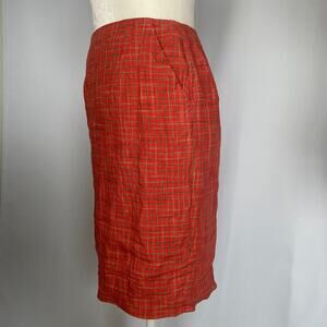 Vintage Pencil Skirt Size 4 Orange Gingham Check 100% Linen Summer Preppy 90s