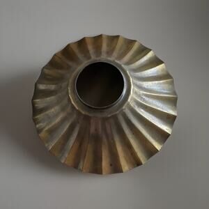 Elevate your lighting fixtures with a touch of vintage charm. This pendant shade showcases an elegant art deco style in a shabby chic distressed weathered gold tone finish. Measuring 2.36 inches in fitter diameter and 8 inches in width, it is designed to complement a variety of settings, from rustic workspaces to polished commercial interiors. It's a versatile piece compatible with hanging lamps, antique or contemporary industrial lights, wall sconce brackets, pool table lights, and kitchen island pendant lights. Fits some standard pendant kits for 2.25" fitters priced at $20-22 at Home Depot (vintage fitter is slightly larger opening at 2.36" diameter) or your own fixtures as this fitter size is not very common. Easy to paint to match your decor. Last pic is for informational purposes only. Shade only included in listing. Message me for multiple discounts on this item.
