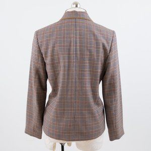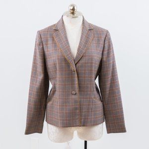 Pendleton 100% wool plaid blazer. Vtg but so on trend for winter layers right now! Long sleeve jacket w lapel collar, pockets, tan piping. Slightly fitted to flatter waist. Chic menswear vibe, but feminine cut. Fab for work or everyday. Hipster Burberry grandpa vibes. GUC.