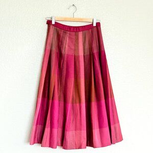 Vintage Pendleton 100% Virgin Wool Magenta Plaid Pleated Midi Skirt Size 4
