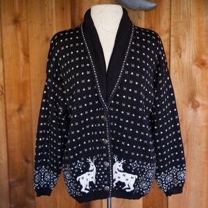 Vintage Pendleton 100% Virgin Wool Reindeer Snowflake Cardigan Sweater Woman's L
