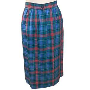 Vintage Pendleton 100% Wool Plaid Pleated Front Skirt Blue Red Green Preppy Academia Old Money