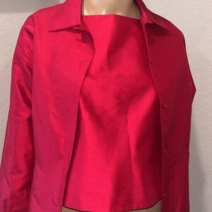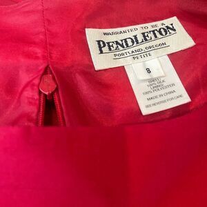Vintage Pendleton cranberry colored 3 pc silk pant suit. Jacket size 8P, vest size 8P, pants size 10P. Shell 100% silk, linings 100% polyester. Dry clean.