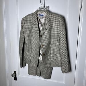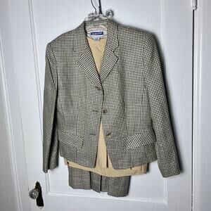 Vintage Pendleton 90s Brown Women's Houndstooth Wool Blend Suit Skirt Set SZ 8