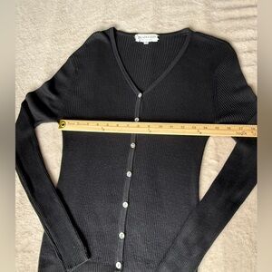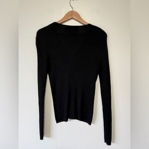 Elegant black V-neck sweater with button-up front. Perfect for any occasion.