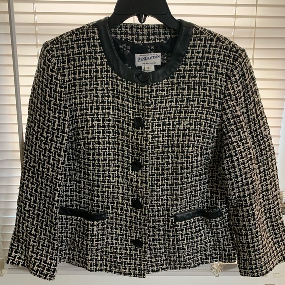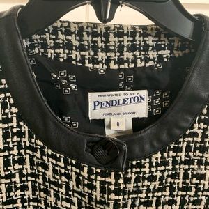 Vintage Pendleton Black and White Tweed Blazer with Leather Trim
