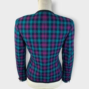Vintage Pendleton Blazer Green Purple Check Long Sleeve Wool Buttons Size 6
