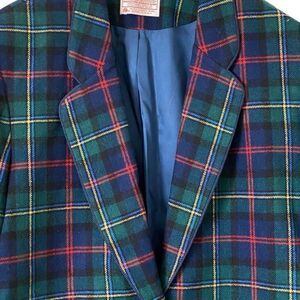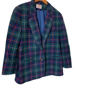 Vintage Pendleton Blazer Jacket Womens 14 Petite Green Tartan Wool Check Preppy