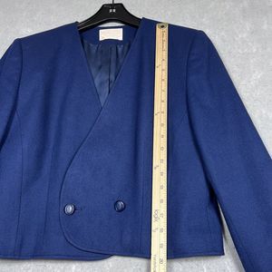 Vintage Pendleton Blazer Womens Size Small Navy Blue Cropped Wool Jacket Buttons