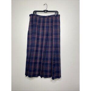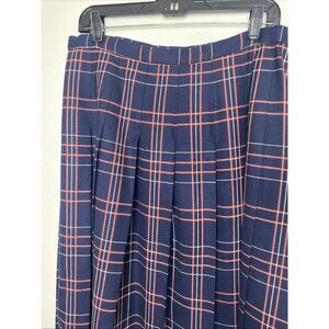 Vintage Pendleton Blue Red Plaid Pleated Virgin Wool Midi Skirt Sz 16 Made USA